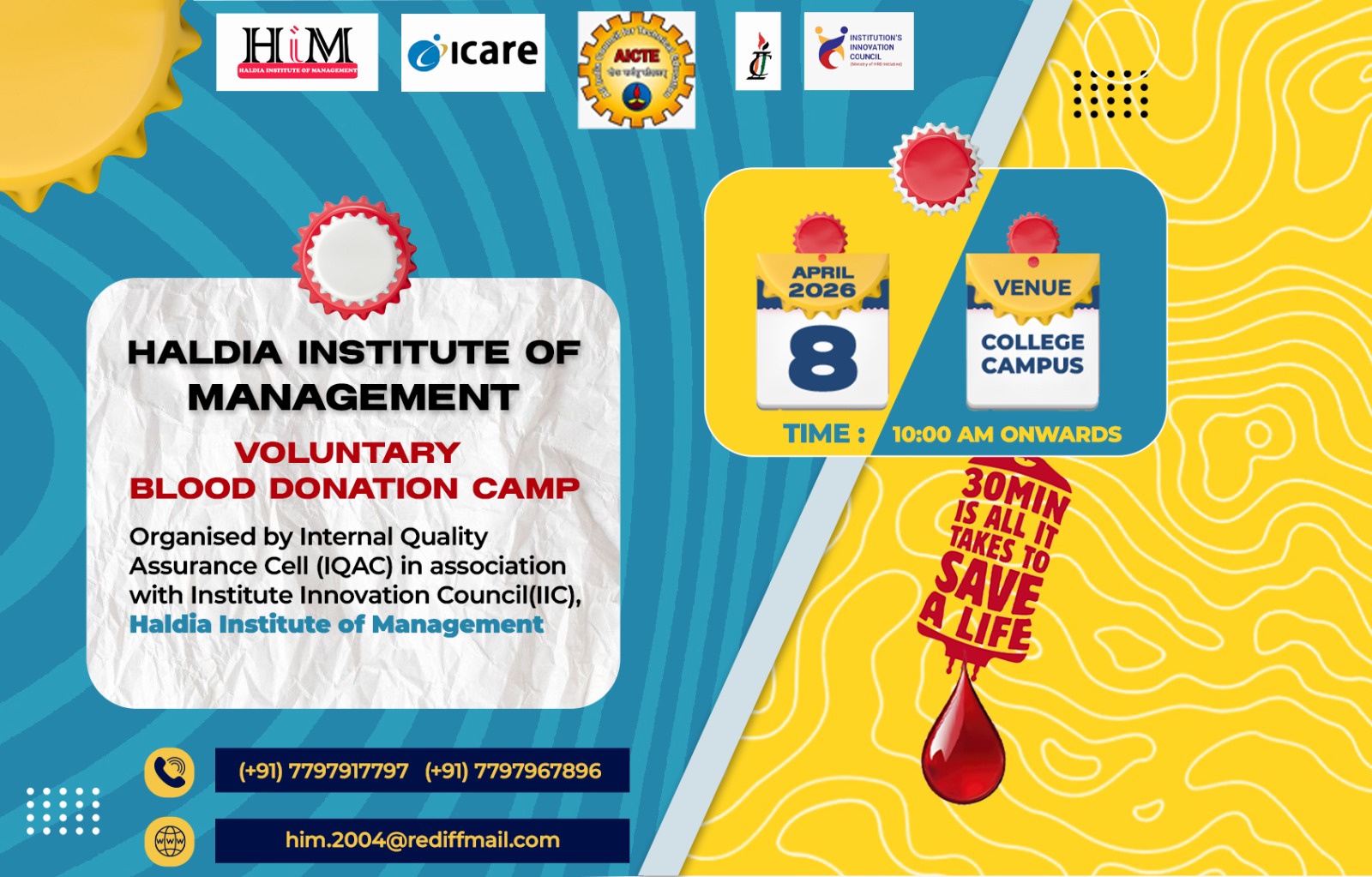 World Health Day 2026 was observed on 7th April with a meaningful workshop on the theme “Together for Health, Stand with Science”, organized by IQAC - HIM in association with IIC - HIM. All first-year students from every department attended the session and actively engaged in discussions on health awareness and scientific responsibility. The workshop featured distinguished speakers - Prof. Amlan Ghosh, Professor & Head, Department of Management Studies, NIT Durgapur; Prof. Saibal Mukherjee, Retired Professor, MBA Department, Jadavpur University; and Dr. Abhimanyu Bishnu, M.S., M.Ch (Oncology), Saroj Gupta Cancer Centre & Research Institute - who shared valuable insights on building a healthier and informed society.